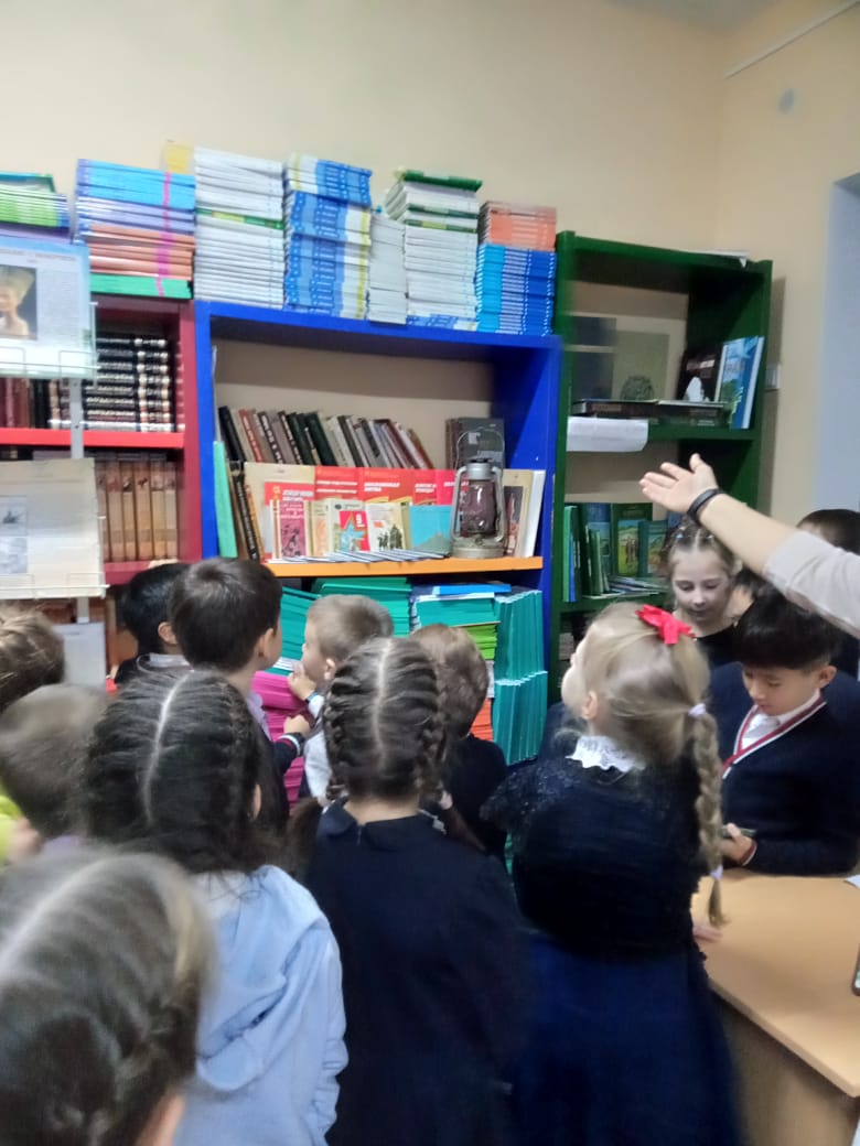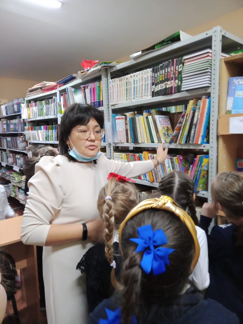 Библиотекарь школы Хайруллина Гульфия Ражаповна радушно встретила первоклассников в сопровождении пионервожатой Гайдуллиной А.И. Она начала ознакомление с библиотекой, рассказав о ее роли для учеников.Показала формуляры,объяснив ,что он заполняется на каждого ученика и в него записываются все книги и журналы,которые берет для чтения домой каждый школьник. Теперь первоклассники знают ,что в библиотеке имеются выставки книг,посвященные Республике Башкортостан, Великой Отечественной войне, Писатели- юбиляры, Новинка месяца и другие. Показала разделы абоненемента, читательского зала, периодики, информационного зала.