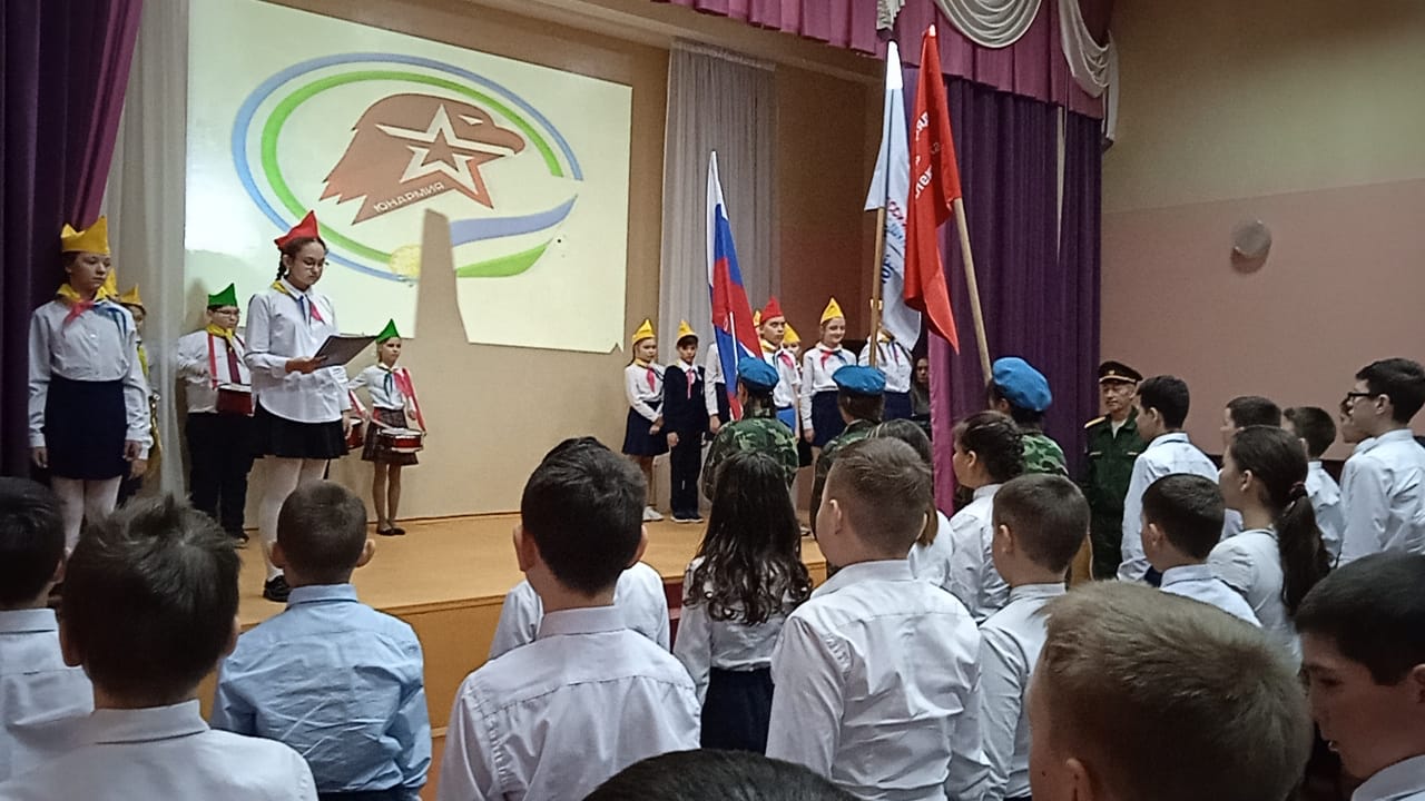 Торжественное посвящение наших учащихся МОБУ СОШ д.Алексееваа в ряды Всероссийского военно- патриотического движения " ЮНАРМИЯ"