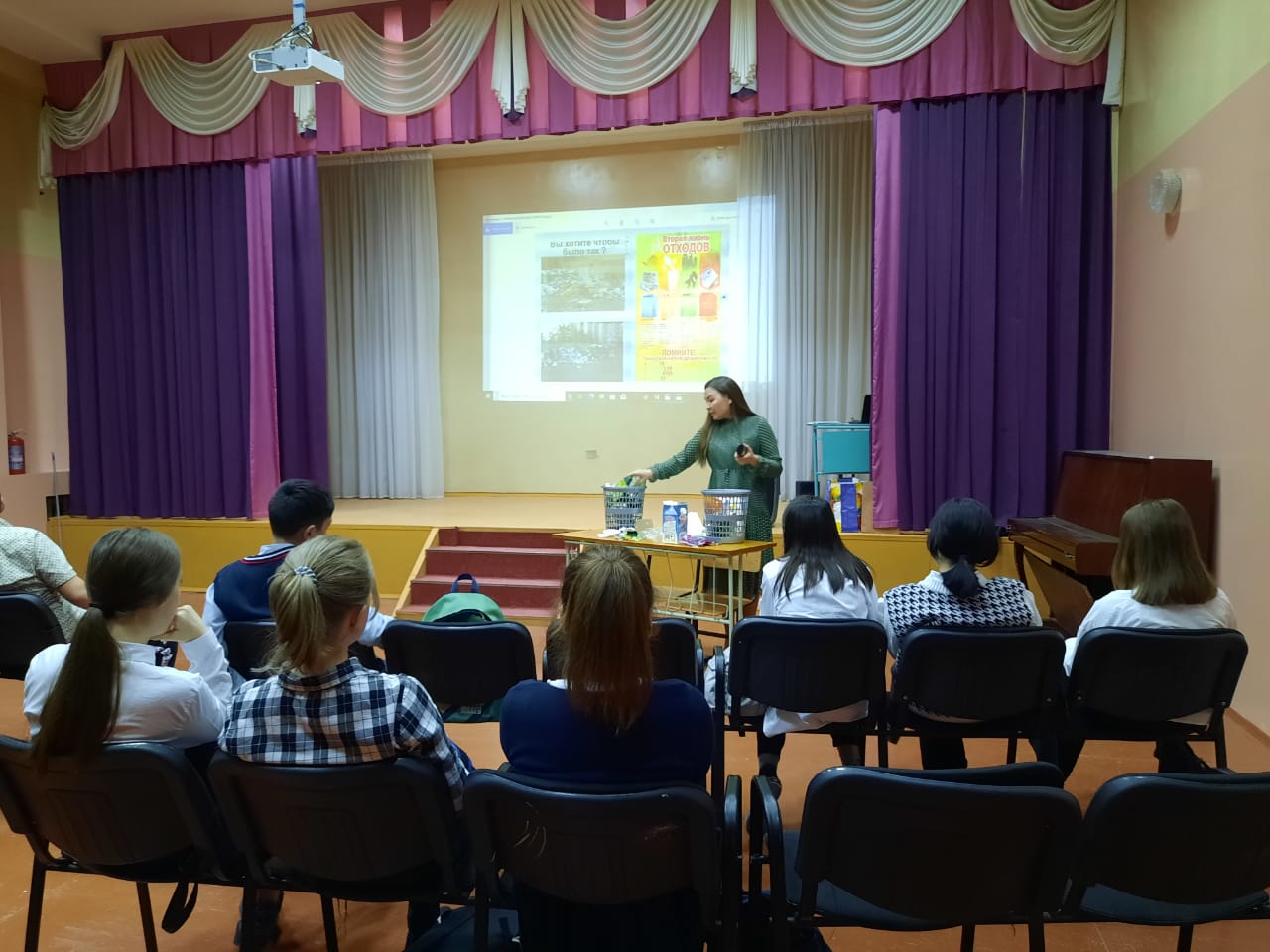 Сегодня, для учащихся 6а, 7б,7в, 7а классов прошел необычный день. Они его посвятили природе. Библиотекарь школы, Гульфия Ражиповна, познакомила с праздниками, посвященные природе, такие как День птиц, День воды, День Земли, День геолога, День Экологии. Урок библиотечный начался с просмотра фильмов о природе, далее дети поиграли в знатоков природы, путешественников, геологов, а в заключении познакомились с наукой экологией. И ее нам представила гость, родитель 2в класса, Мухаметзянова Сания Рифатовна, которая рассказала, как она вносит свой вклад в защиту природы. Она занимается сортировкой мусора и добилась результатов, что она природу не загрязняет, все отправляет на переработку.. Детям показала как можно начать сохранять природу, что для этого нужно делать. Шаги простые и легкие, всего лишь не нужно ленится.