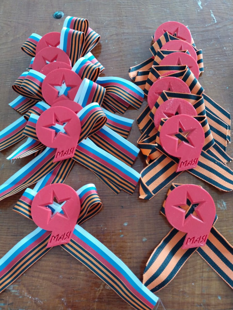 На занятиях конструирования ребята сделали значки к Празднику 9 мая на 3д принтере. Закрепили георгиевскую ленточку и булавку. Такие значки получили Юнармейцы нашей школы и участник военных действий в Афганистане Богданович Александр Васильевич.