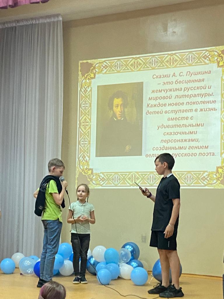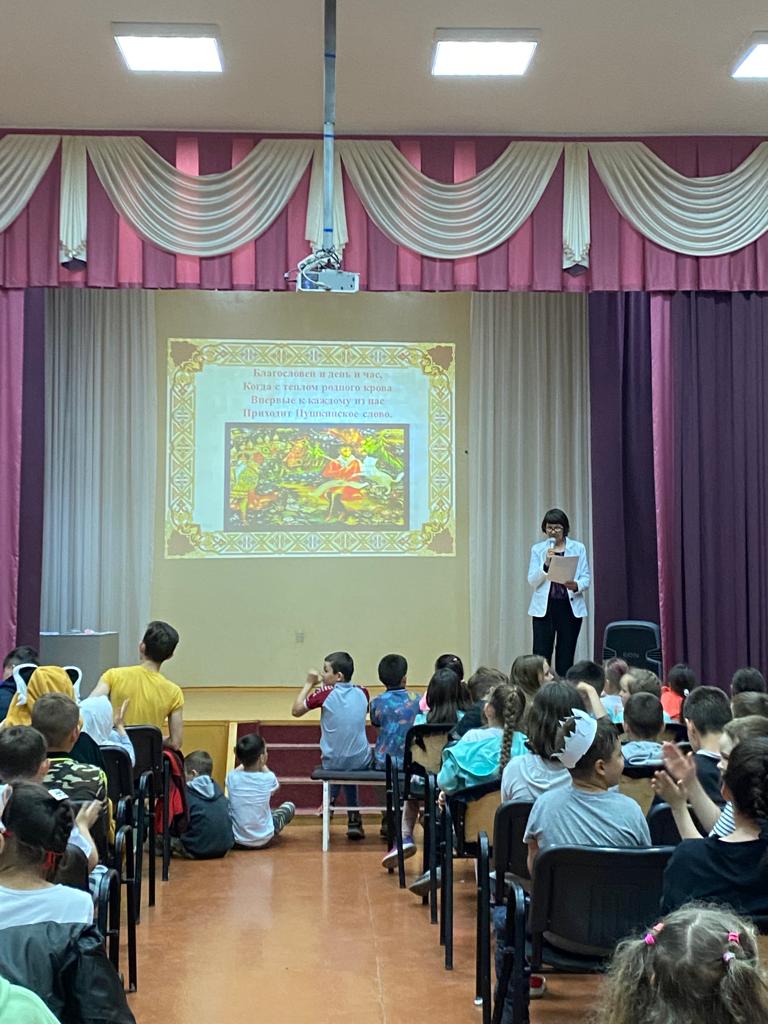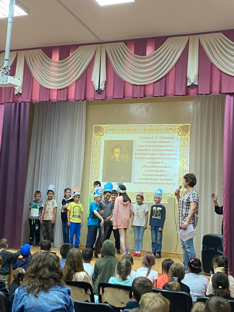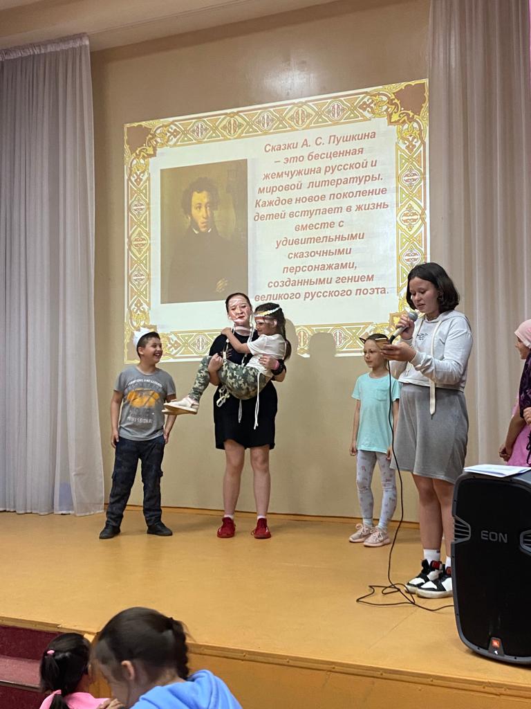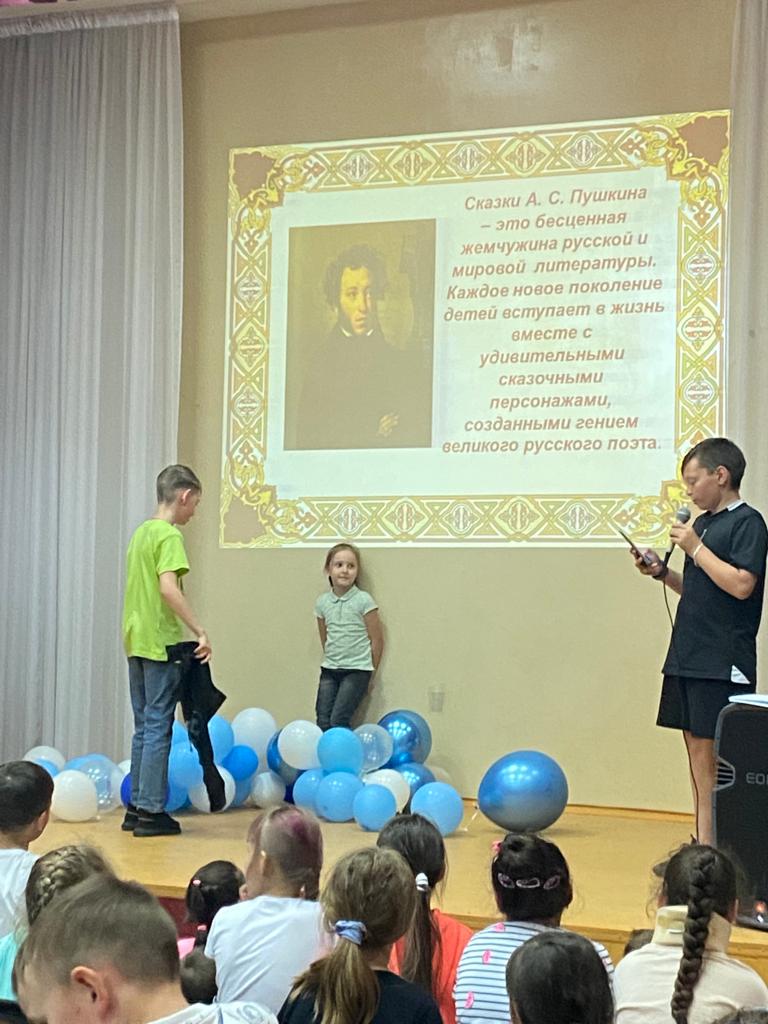 День Пушкина и русского языка проводился 6 июня в лагере дневного пребывания детей.Была викторина по сказкам А.С.Пушкина,разгадывание ребусов и другие задания русского языка.Затем каждый Отряд показал инсценировку небольшого отрывка из сказок А.С.Пушкина.Был мастер - класс по мыловарению,а после вкусного обеда был флешмоб ,танцевал весь лагерь,а вожатые управляли этим общим танцем