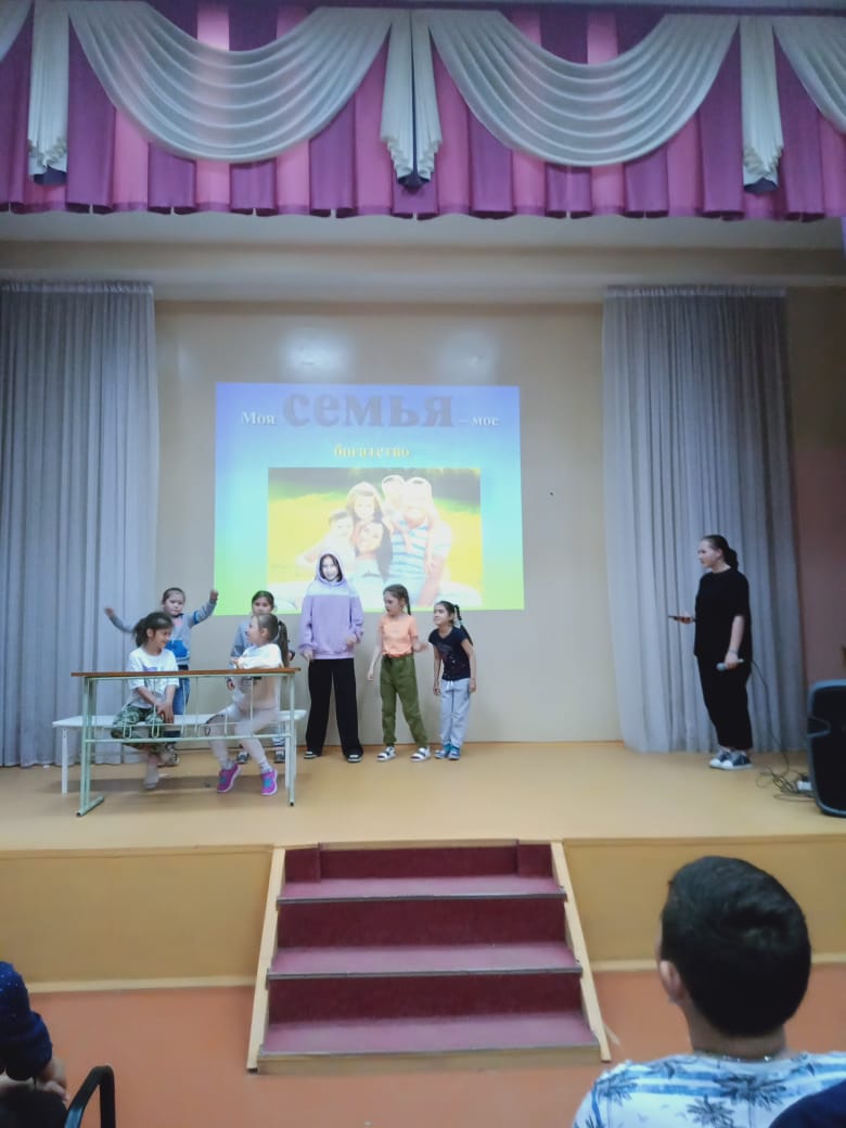В лагере провели "День Семьи".Вожатые получили задания и начали активно готовить свои отряды к данному мероприятию.В актовом зале собрались ребята на викторину о Семье,отгадывали загадки и ребусы о семье и семейных отношениях,конкурс пословиц и поговорок о семье.И вот ребята стали показывать свои приготовленные шуточные сценки из семейной жизни.В конце дня конечно же флешмоб.