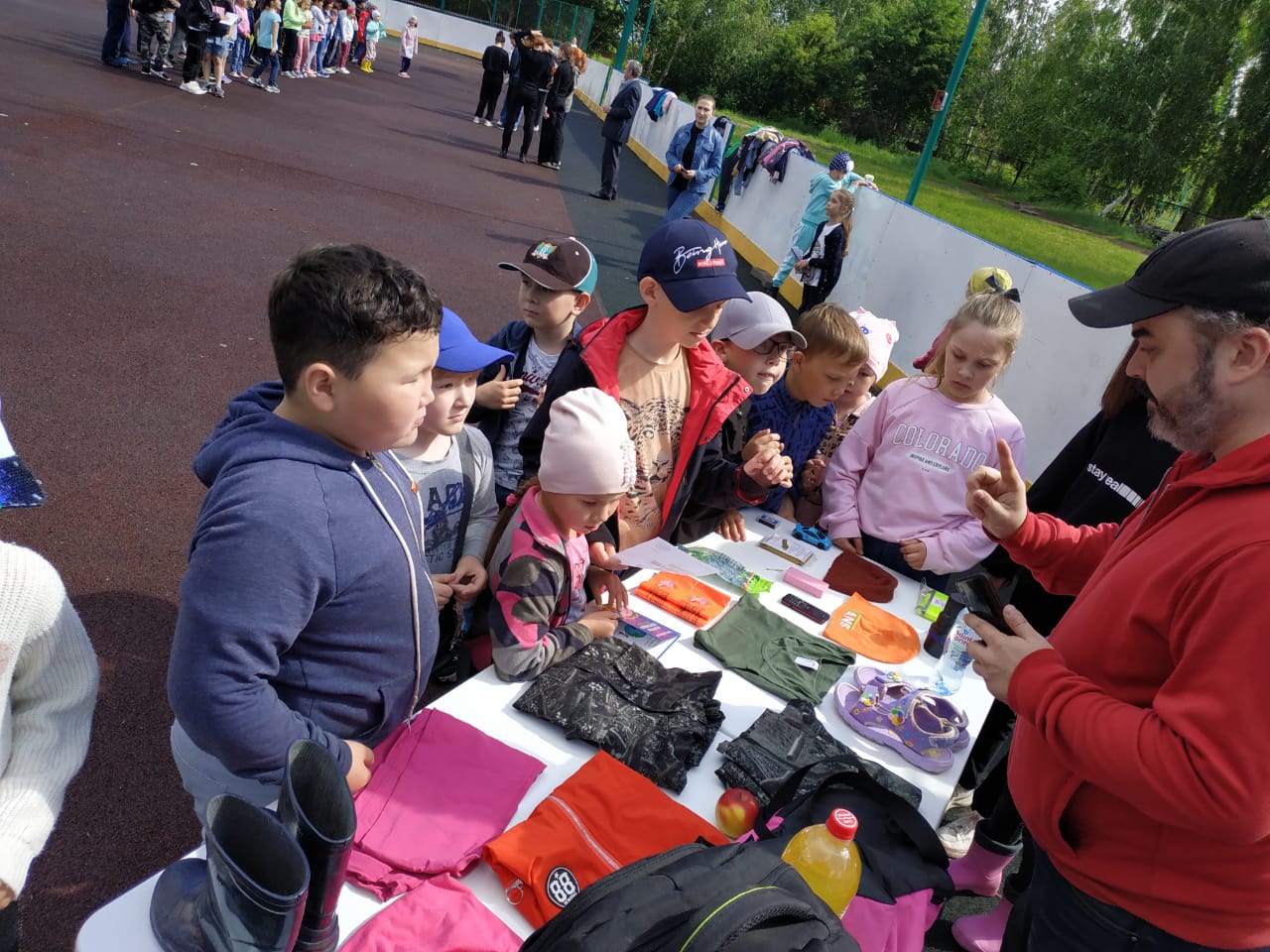 14 июня в лагере " День спорта".После зарядки на свежем воздухе,ребята позавтракали,вожатые получили ценные указания от старшего вожатого Валеры о всех мероприятиях дня.Ребята играли в Пионербол, Волейбол ,Футбол,прошли Весёлые старты.В конце дня провели весёлый флешмоб.