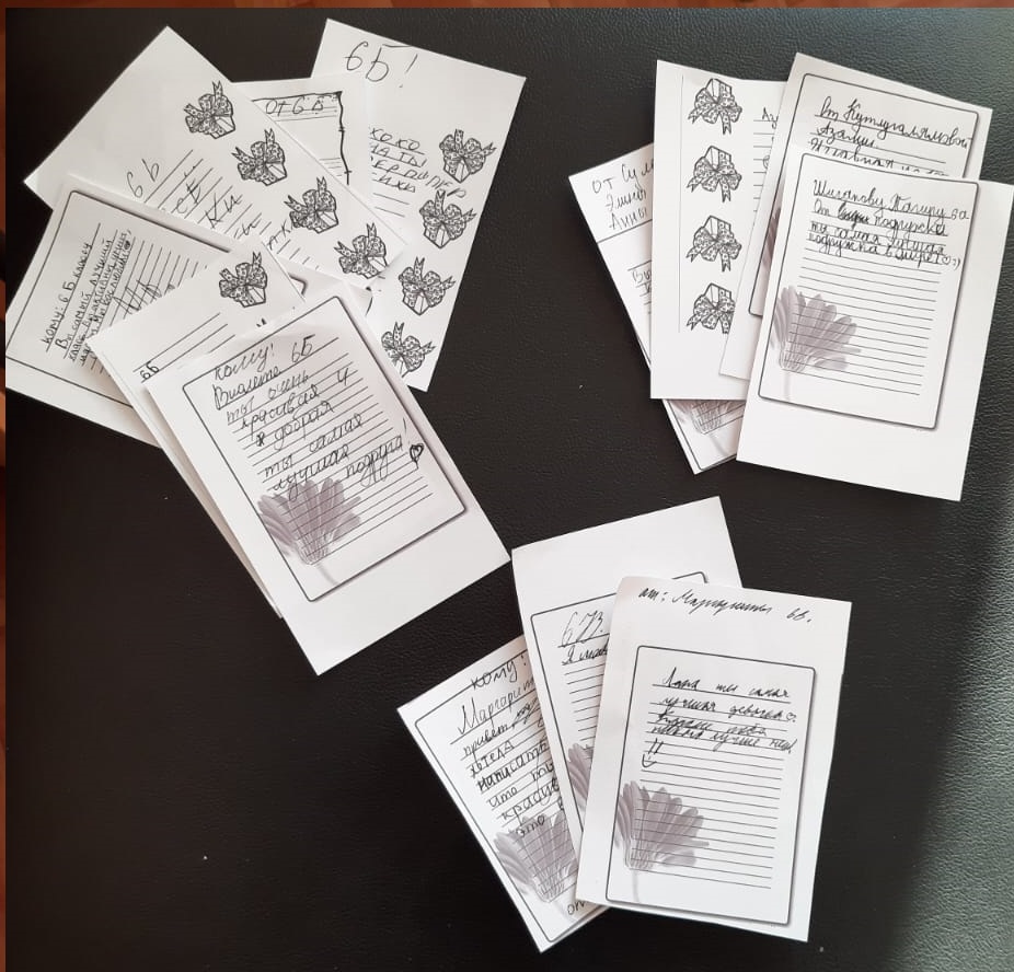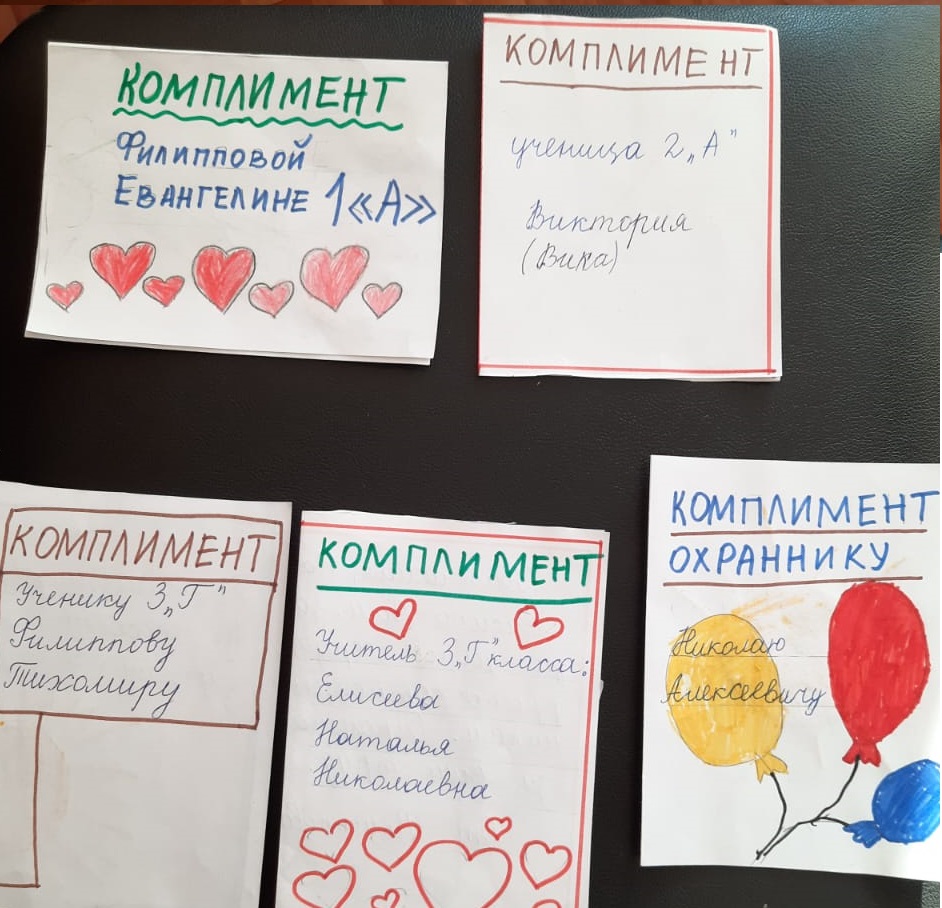 Каждый год в этот день у нас все пишут комплименты друг другу и в этом году уже в течение часа коробочка пополнилась комплиментами.