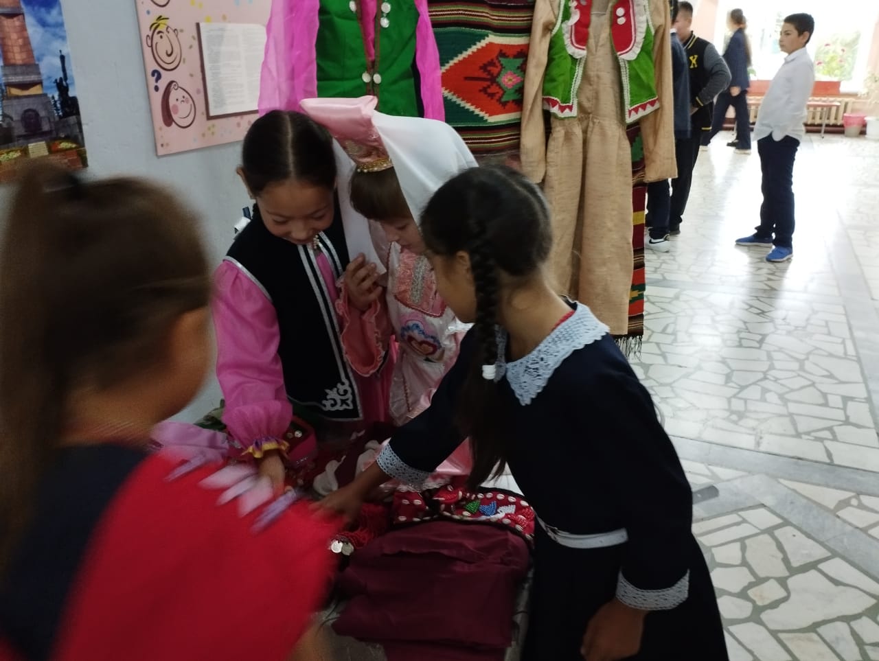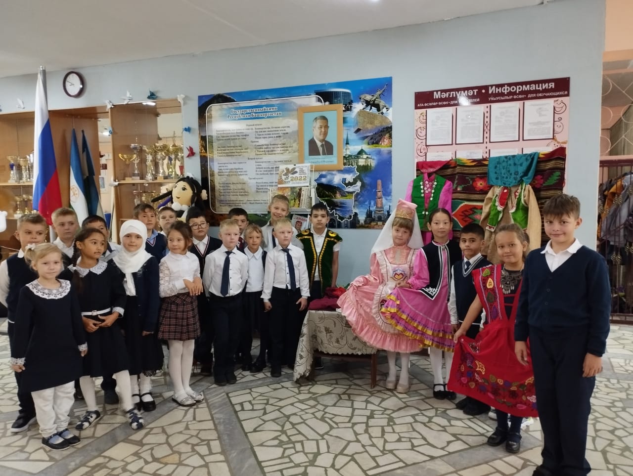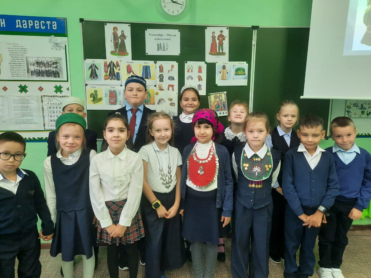 Традиционно наша школа в этот праздник приходит в национальных костюмах. Наш педагог-библиотекарь готовит фотозону народных костюмов и выставку книг, журналов и стенгазет, посвященные этому празднику. Все с удовольствием изучают и примеряют костюмы, читают , смотрят книги и журналы, делают снимки в оформленной фотозоне. Учителя родных языков проводят уроки, где показывают презентации, фильмы, исполняют песни и мелодии народов республики, показывают костюмы , украшения., читают произведения по теме. сегодня в честь этого праздника учащиеся начальной школы читали скороговорки на родных языках, играли в русскую игру "Золотые ворота", башкирскую "юрту", татарскую "тюбетейку". Дети с удовольствием сыграли познакомились с играми народов России, На переменах звучит национальная музыка. Вот так интересно прошел 9 сентябя.