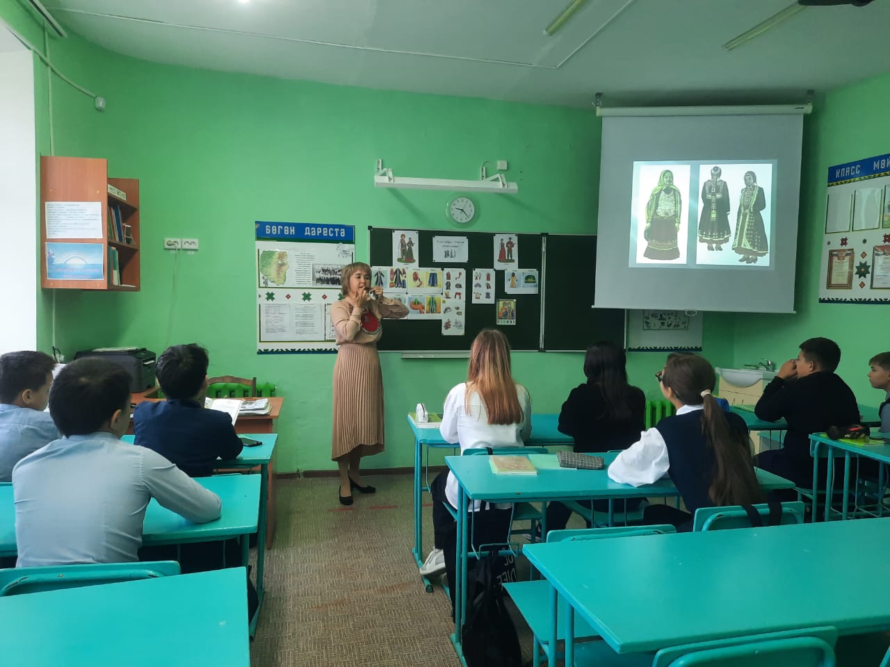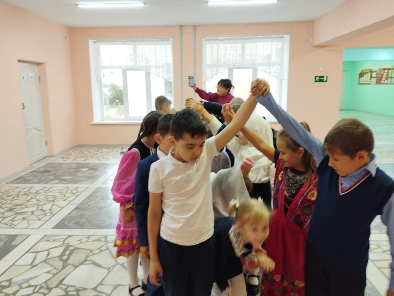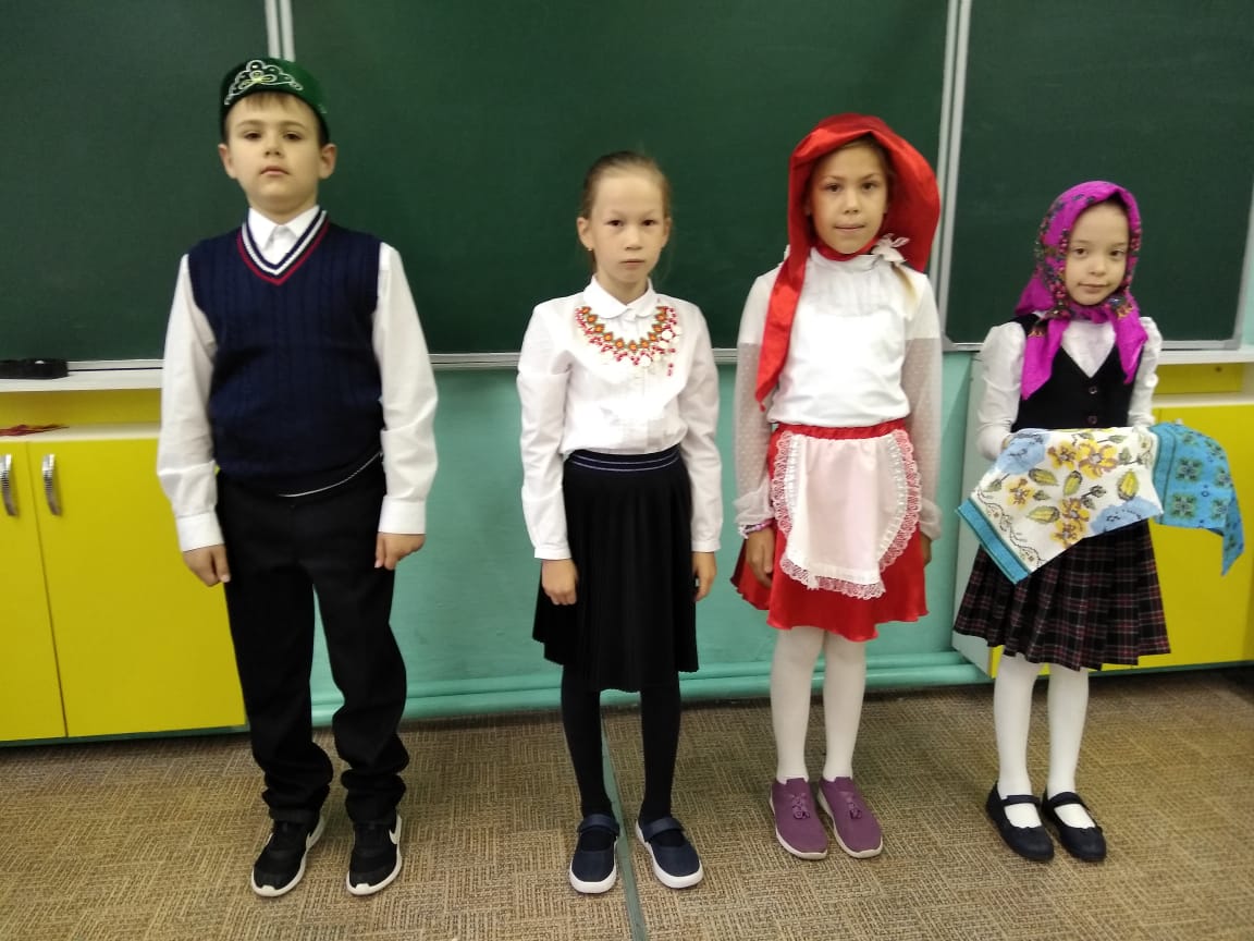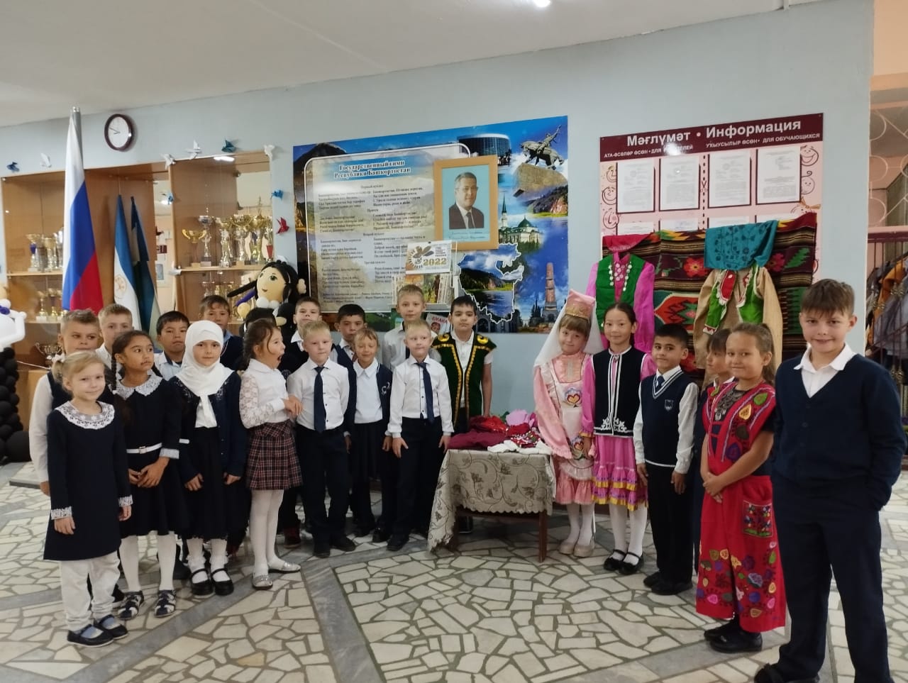 Традиционно наша школа в этот праздник приходит в национальных костюмах. Наш педагог-библиотекарь готовит фотозону народных костюмов и выставку книг, журналов и стенгазет, посвященные этому празднику. Все с удовольствием изучают и примеряют костюмы, читают , смотрят книги и журналы, делают снимки в оформленной фотозоне. Учителя родных языков проводят уроки, где показывают презентации, фильмы, исполняют песни и мелодии народов республики, показывают костюмы , украшения., читают произведения по теме. сегодня в честь этого праздника учащиеся начальной школы читали скороговорки на родных языках, играли в русскую игру "Золотые ворота", башкирскую "юрту", татарскую "тюбетейку". Дети с удовольствием сыграли познакомились с играми народов России, На переменах звучит национальная музыка. Вот так интересно прошел 9 сентябя.